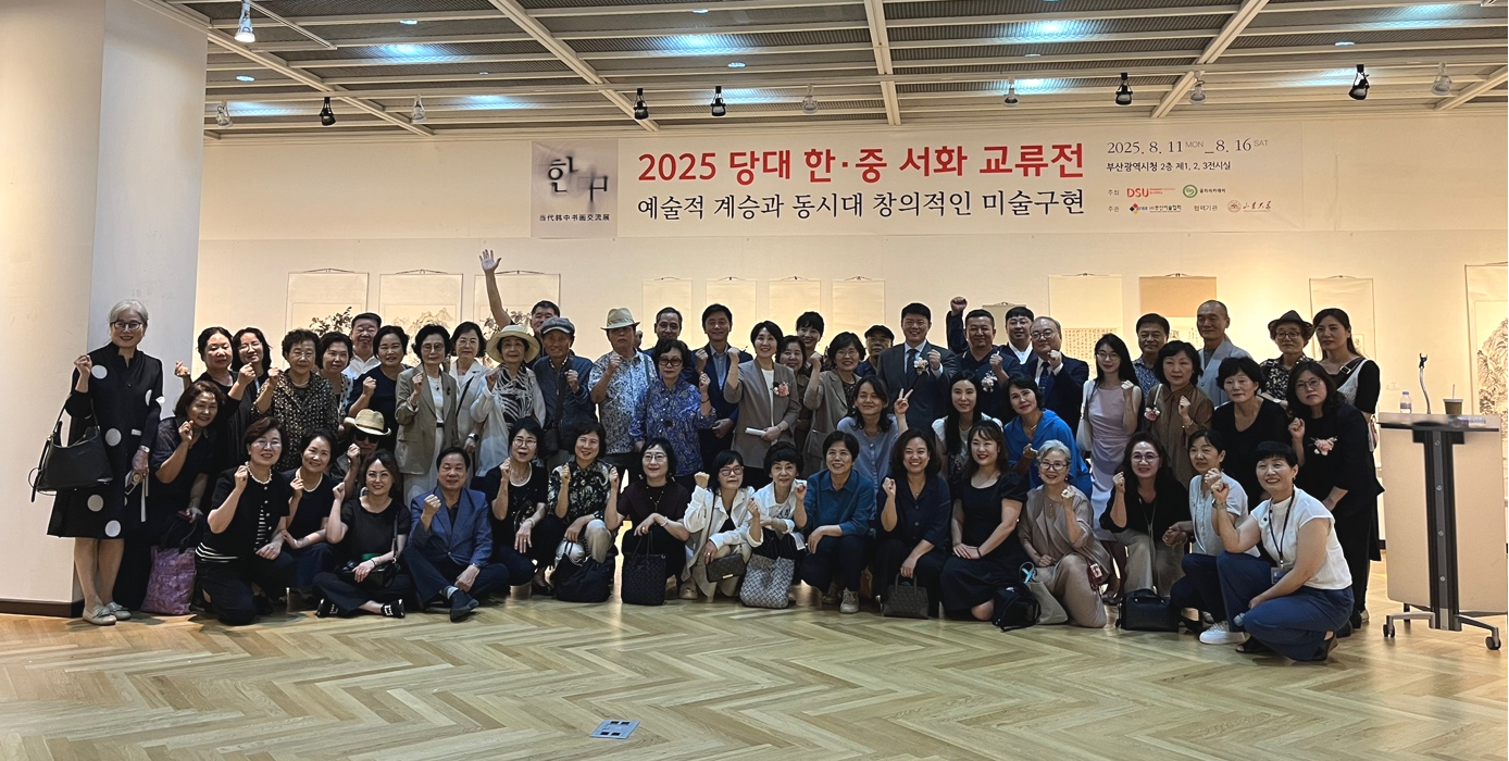 8月11日,“2025年当代中韩书画交流展”开幕式在韩国釜山举行。活动由韩国东西大学孔子学院主办,山东大学艺术学院与韩国釜山美术协会承办。东西大学副校长金静鲜,中国驻釜山领事馆副总领事于瓅斐,山东大学艺术学院代表邢小震、董梅及釜山美术协会理事长崔漳洛等出席。开幕式由美术协会负责人与孔子学院中方院长郑冬梅共同主持。