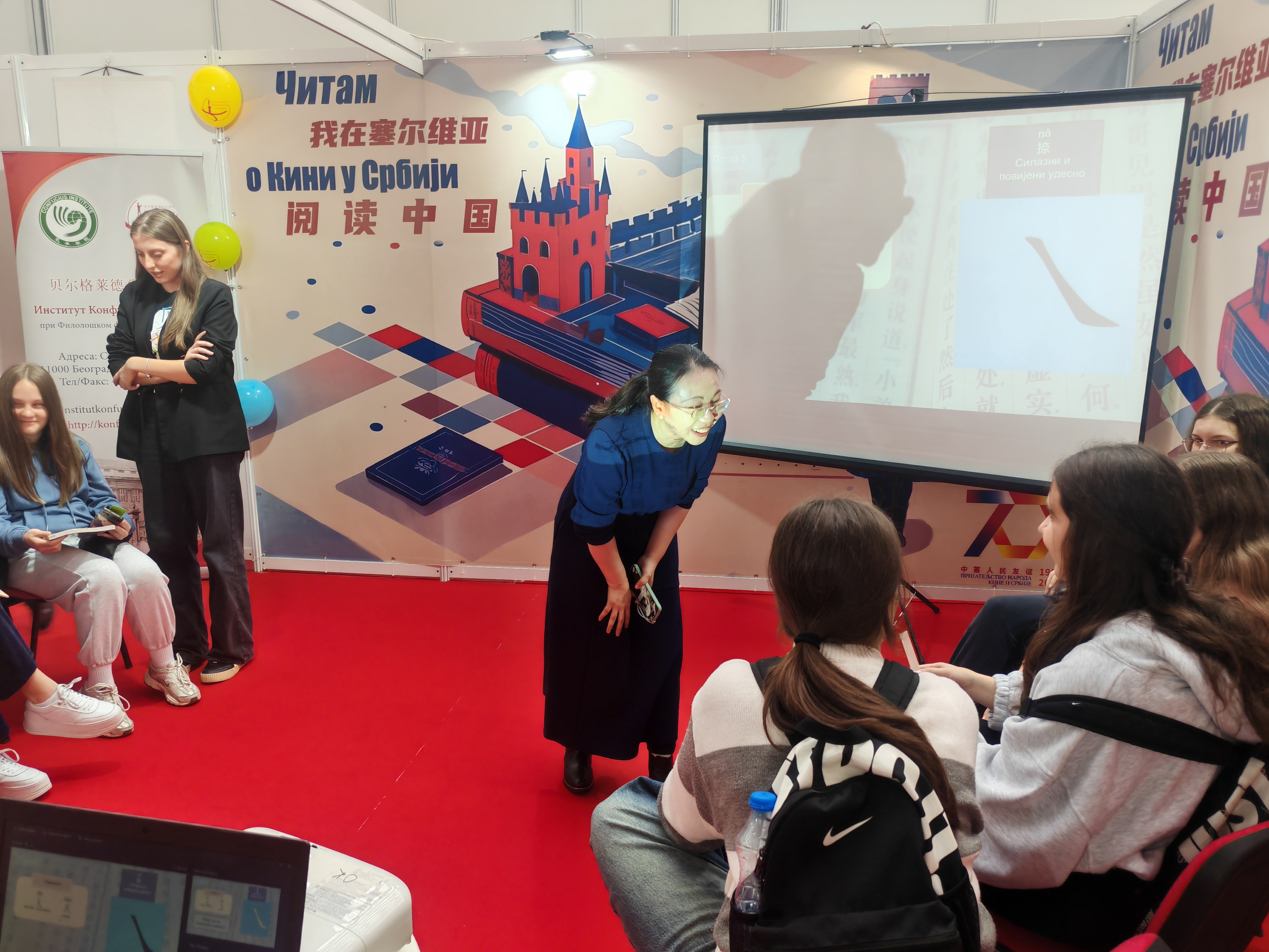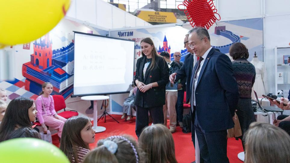 10月26日,第68届贝尔格莱德国际书展隆重举行。本次书展是“中塞人民友谊70年”系列庆祝活动的重要组成部分,中国驻塞尔维亚大使馆与契戈亚出版社携手打造“我在塞尔维亚阅读中国”图书专区,并举办“中国日”主题活动。作为中国语言文化推广的重要平台,贝尔格莱德孔子学院深度参与此次活动,特别策划的“汉语小课堂”成为全场亮点之一,中国驻塞尔维亚大使李明亲临现场,并与参与活动的塞尔维亚学生、家长亲切交流。